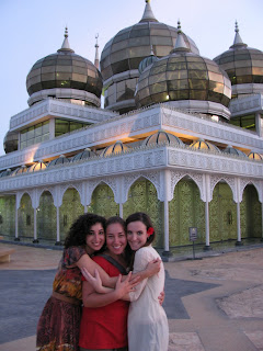 Unlike KL, with its cosmopolitan, diverse climate, Terengganu is almost 100% ethnic Malays, all of whom are Muslim. Terengganu is one of the most conservatively Islamic states in the country. The weekend falls on Friday and Saturday, because Friday is the holy day in Islam. But Terengganu is also known for its beaches and islands, and with it, an accompanying laid-back vibe. We spent 2 weeks at a KT hotel right on the beach. But in a town where bikinis are taboo, and the monsoon season (which runs roughly from November to March) made the waves too big to swim in, beach-going was definitely a different experience than in the states. However, we befriended some Malaysian surfer guys who hit the KT beach daily during monsoon season. We also befriended some local boys, about age 12, who we played soccer with on the beach. We all had a huge bonfire one night on the beach. The surfers brought the wood, which seemed like they just had ripped off of a nearby palm tree. They also brought a contraption: a long rope with a bundle of steel wool at the end. They dipped the end in the fire and swung the rope around creating a spectacular display of flying sparks. It was amazing: 17 American ETAs, Malaysian surfer dudes, and a collection of über-curious, non-English speaking Malay boys- all sitting around a moonlit fire, listening to the waves as we watched our handmade fireworks display.